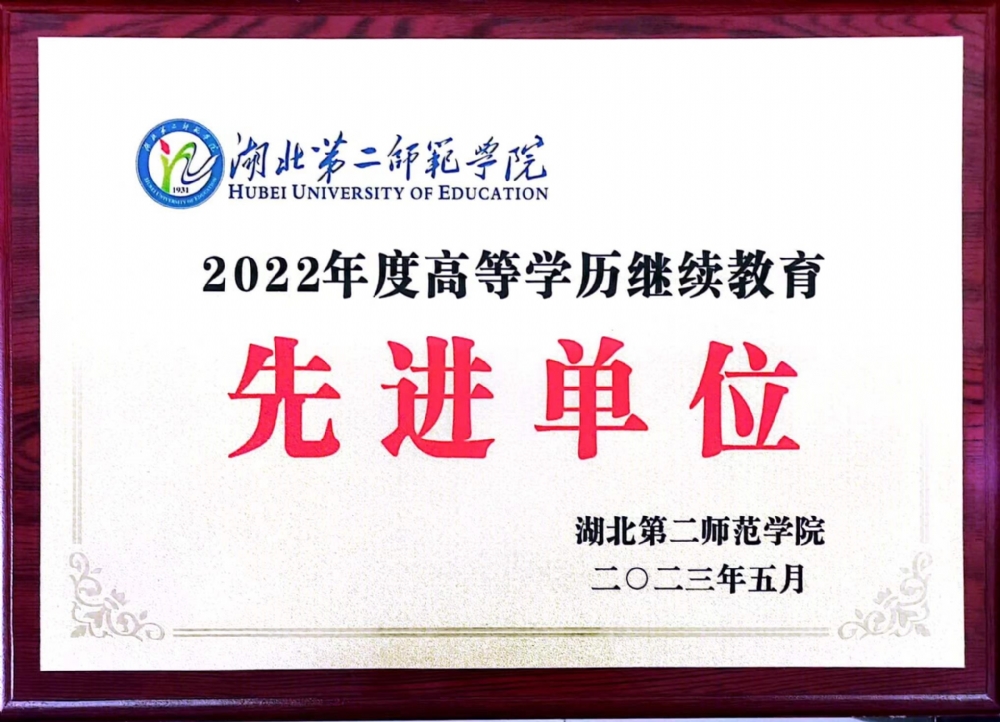 2023年5月湖北第二师范学院获2022年度高等学历继续教育先进单位称号