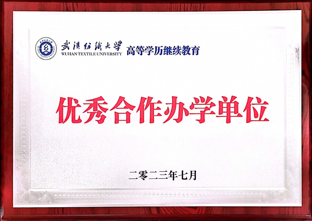 2023年7月武汉纺织大学高等学历继续教育获优秀合作办学单位称号