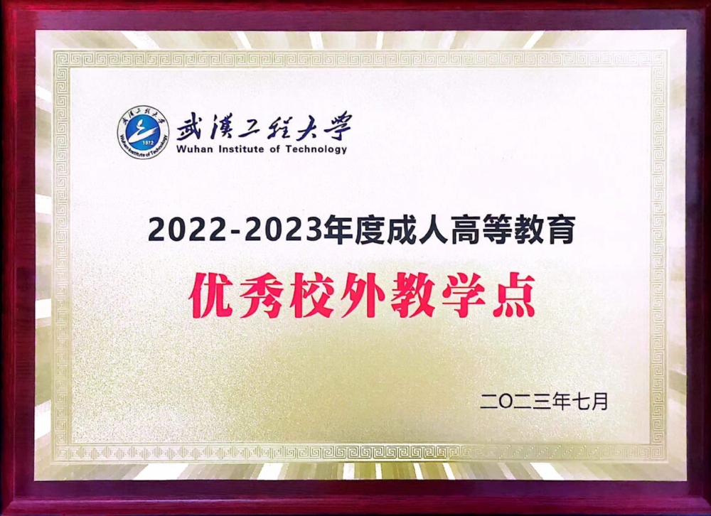 2023年7月武汉工程大学获2022-2023年度成人高等教育优秀校外教学点称号