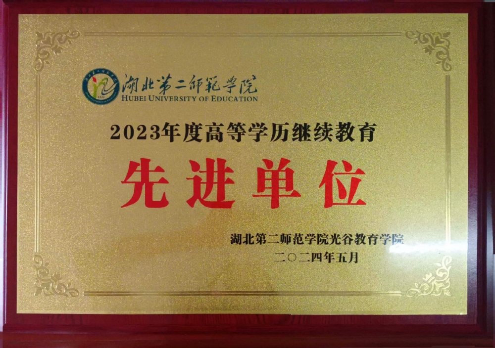 2024年5月湖北第二师范学院获2023年度高等学历继续教育先进单位称号