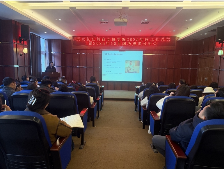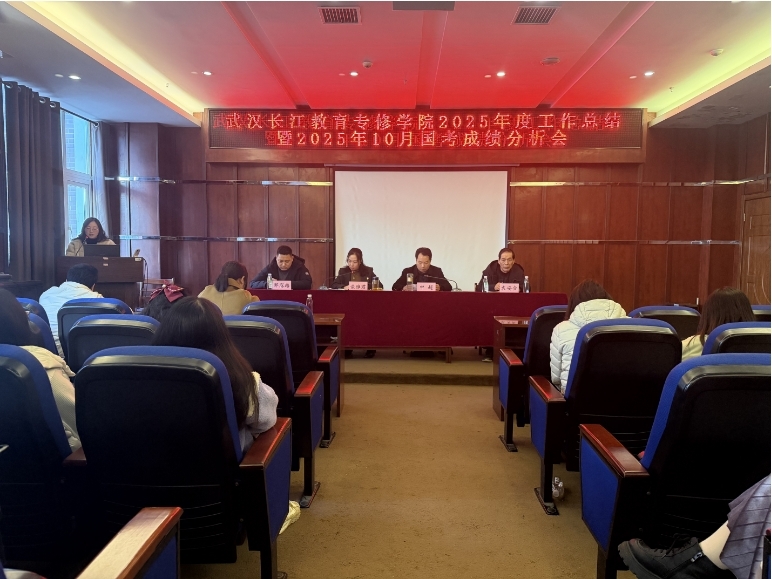 岁序更迭,笃行致远。1月15日下午,武汉长江教育专修学院以线上线下融合模式,在学院总部报告厅召开2025年度工作总结暨2025年10月国考成绩分析大会。全院教职工齐聚一堂,全面复盘过往成效、深入剖析核心问题、明确新年发展路径,会议由执行院长谈雅君主持。